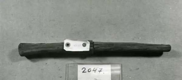 • Krysshult, V-format, höger- och vänsterben utan tvärslå. Sex nagelhål i högra och fem i den vänstra benet. Saknar kiphål. Sjöfynd från RIKSÄPPLET.
