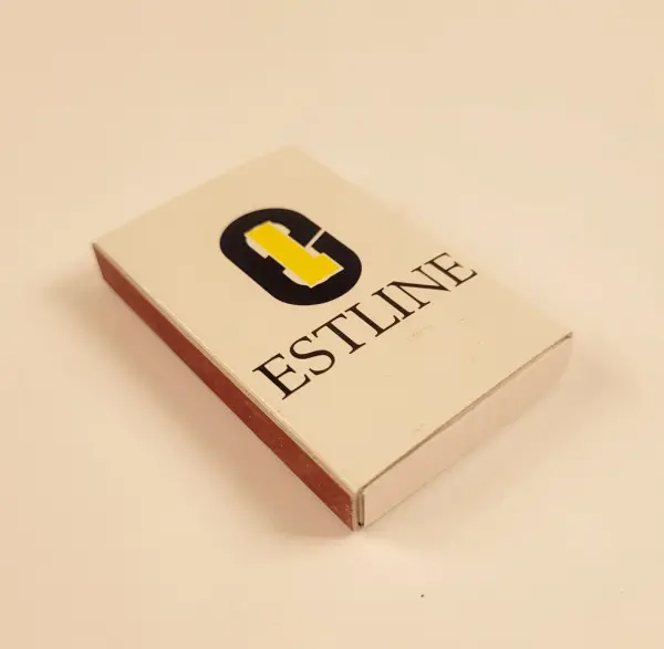 • Vit tändsticksask med rederi Estlines logotyp för åren 1990-1994.