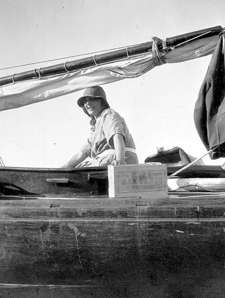 Kvinnlig rorsman, troligen Kate Fogelmark.