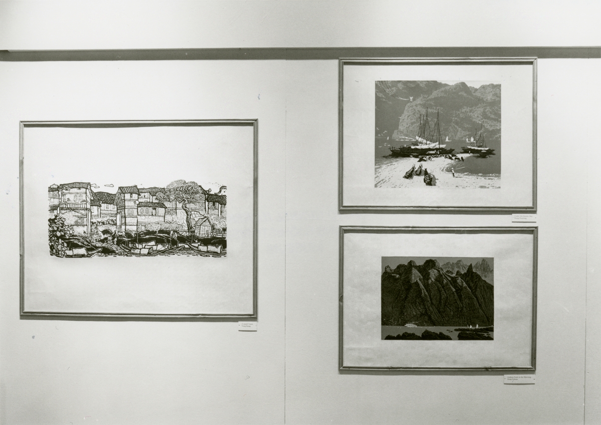 Utställningen "Fjorton kinesiska träsnitt från Anhuiprovinsen". Tre stycken träsnitt med kinesiska motiv.