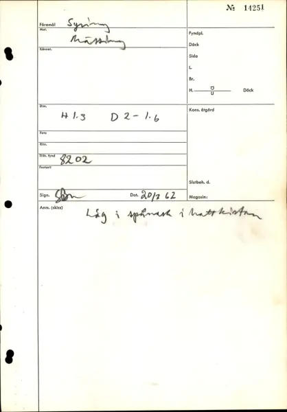 • Proveniens 1961-05-12 av I Vasa, Övre batteridäck, balk 1-2, styrbord.