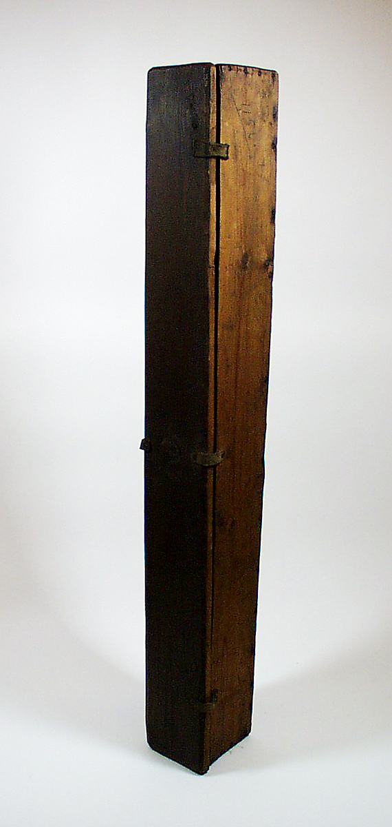 • Innehöll vid förvärvet vävskedar, skyttlar, vävlunor, varpsticka, mattsticka samt en vävspännare av järn. En tovkrona av lin fanns i lådan men kastades då den var angripen av ohyra. Likaså ett knippe ... Visa hela
