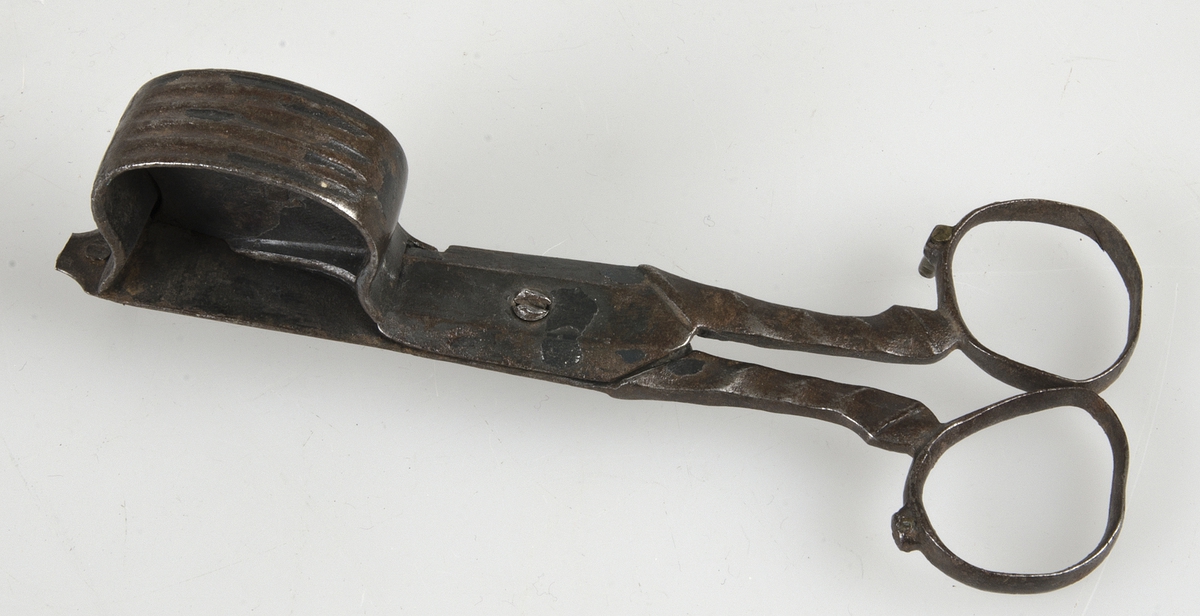 • Ljussax av järn, med räfflad sida. Med stämpel "LB".