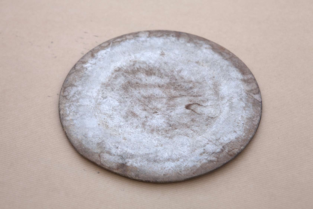 Pappersetikett på undersidan, varpå är skrivet med bläck: C. A. Ström Benstocken Husby-Erlinghundra. Inkom 1926, enligt accessionskatalogen, från Hälsingland.