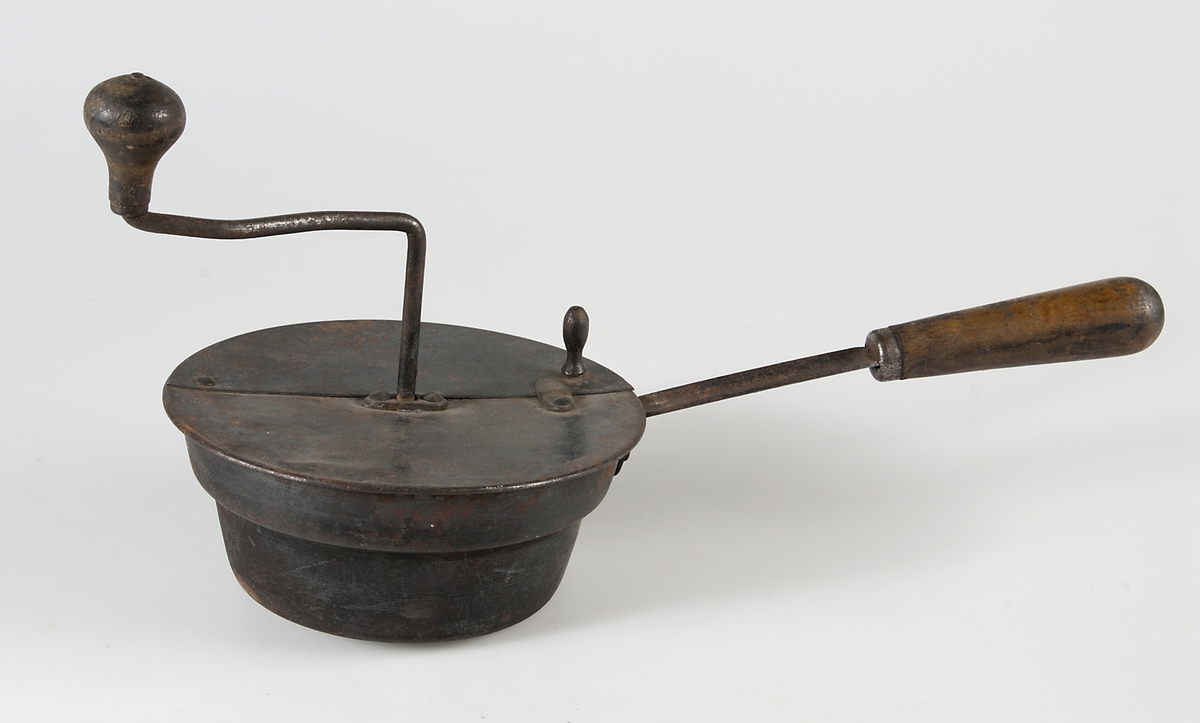 Givarinnan har köpt kafferostaren under första världskriget, troligen i en lanthandel i Skepptuna, Uppland. Gåva den 30 juni 1959 från Hulda Fritzell, Uppsala.