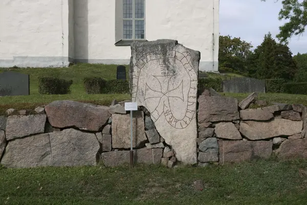 Runsten U912.Bilden har tagits i samband med kulturhistorisk karakterisering av Börje kyrka, Börje socken, Uppland i september 2007.