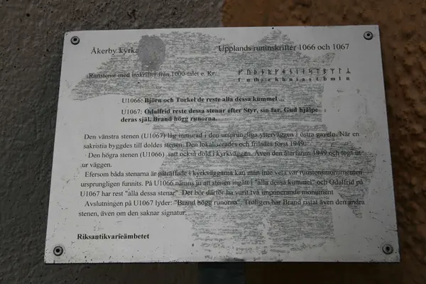 - Riksantikvarieämbetets informationsskylt vid runstenarna intill Åkerby kyrka, Åkerby socken, Uppland 2007.
