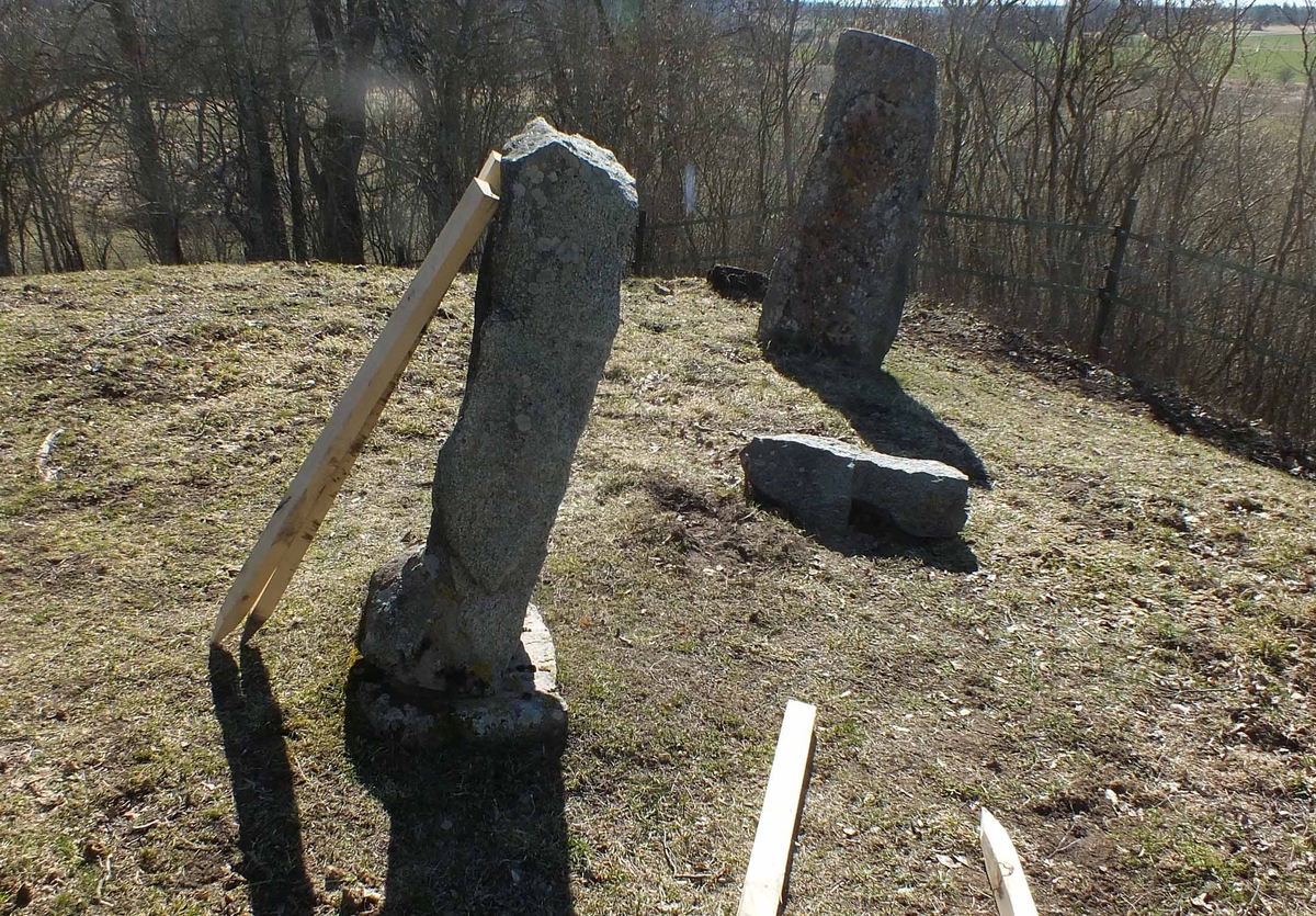 Arkeologisk kontroll, runstenarna U1026 och 1027 på den tidigare uppställningen med tydlig lutning, Kunsta, Lena socken, Uppland 2019