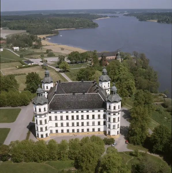 • Vy över Skoklosters slott och Skoklosters kyrka vid Mälaren, Skokloster socken, Uppland, juni 1989