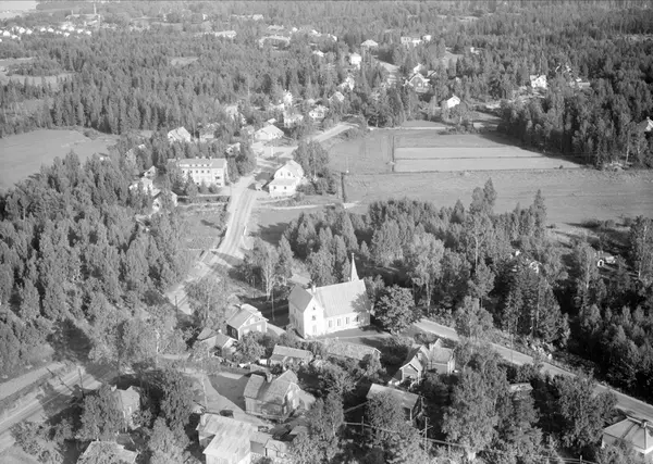 • Flygfoto över Nöttö, Västlands socken, Uppland 1958