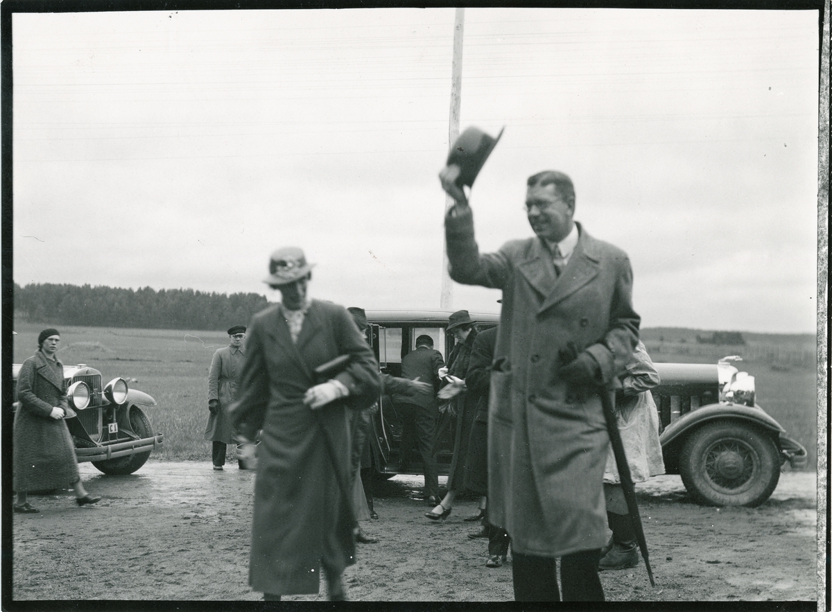 "Kronprinsparet anländer - obekymrat av regn och rusk", Härkeberga, Uppland 1936