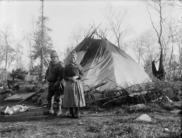 - Två samer framför en kåta, Kiruna, Lappland