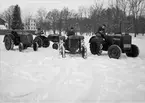 Män kör traktorer under maskinskötarutbildning på Lantbrukshögskolans maskintekniska institution