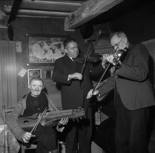 Spelmannen Matts Berlin i bostaden, Bandarbo, Bälinge, Uppland november 1952
