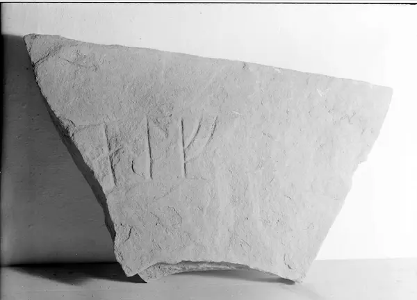 Fragment av runsten tillvarataget på kyrkogården vid Skoklosters kyrka, Uppland 1948