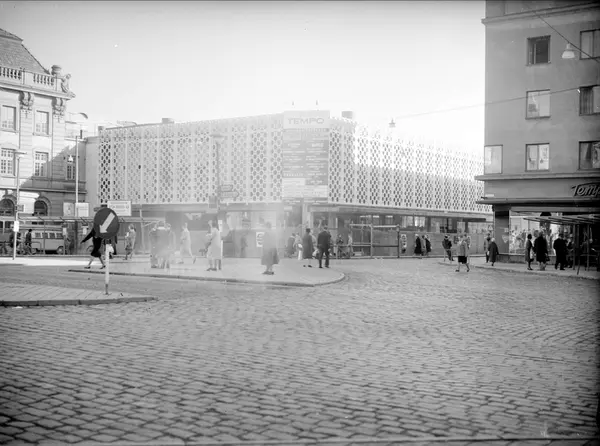 • Tempohuset vid Stora Torget i Uppsala under uppförande
