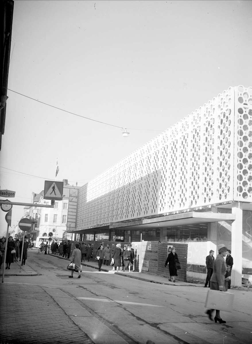Tempohuset vid Stora Torget i Uppsala under uppförande