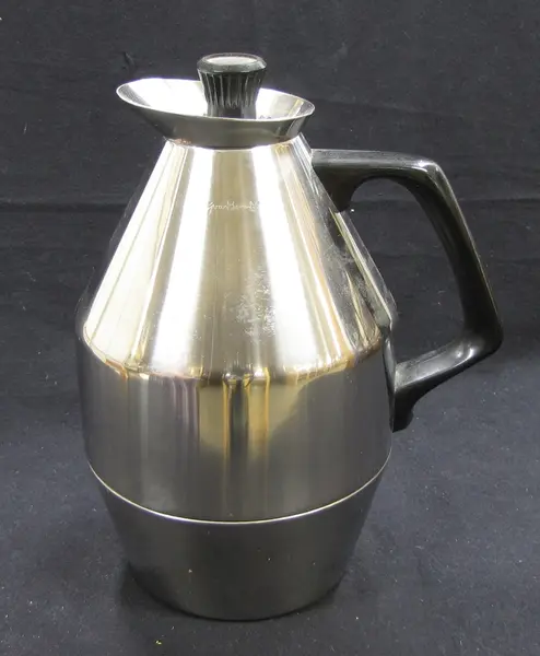 Termoskanna, så kallad Tv-kanna, i rostfritt stål.