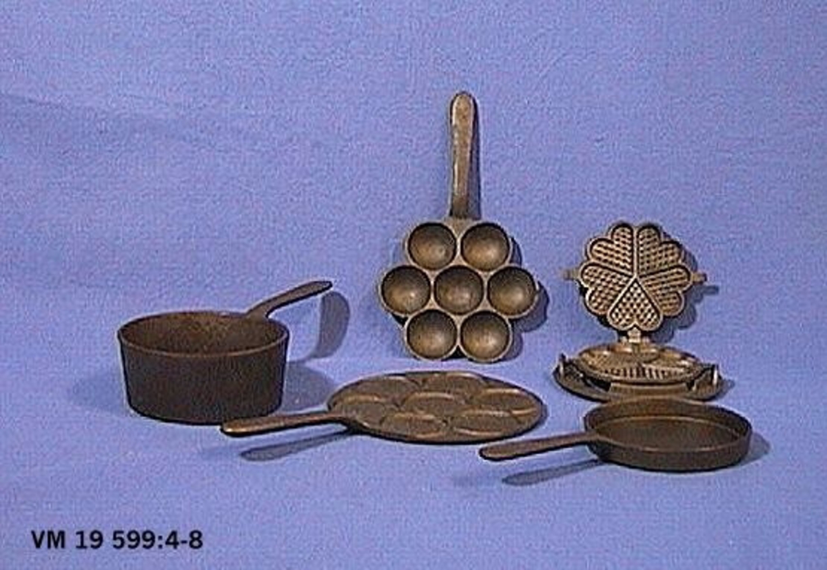 19 599:1 Spis:2 Ugnspanna:3 Ugnsplåt:4 Plättlagg:5 Stekgryta:6 Stekpanna:7 Våffeljärn:8 Munkpanna