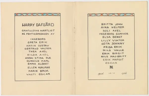 Harrys far var Otto Dafgård (1876-1934), charkuterist. Ottos hustru var Johanna Gustava Olsson (1863-1928). Det var Otto som lät bygga en liten sommarstuga på Fruholmen i Göta älv, nedanför Holmängens Fattiggård. Stugan kallades "Hytta" och var, förutom rekreation för familjen, plats för många festliga tillställningar med Ottos kamrater. Det är till denna vänkrets med handlare i Vänersborg och konstnären Elis Barkstedt som mycket av gåvorna kommer.