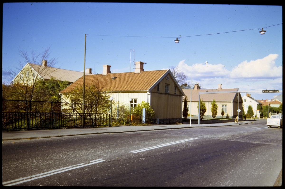 Detta diapositiv i färg är en del av den byggnadsinventering som gjordes i Vänersborg 1972. Motiven på färgbilderna visar oftast bebyggelse ur ett gatuperspektiv.