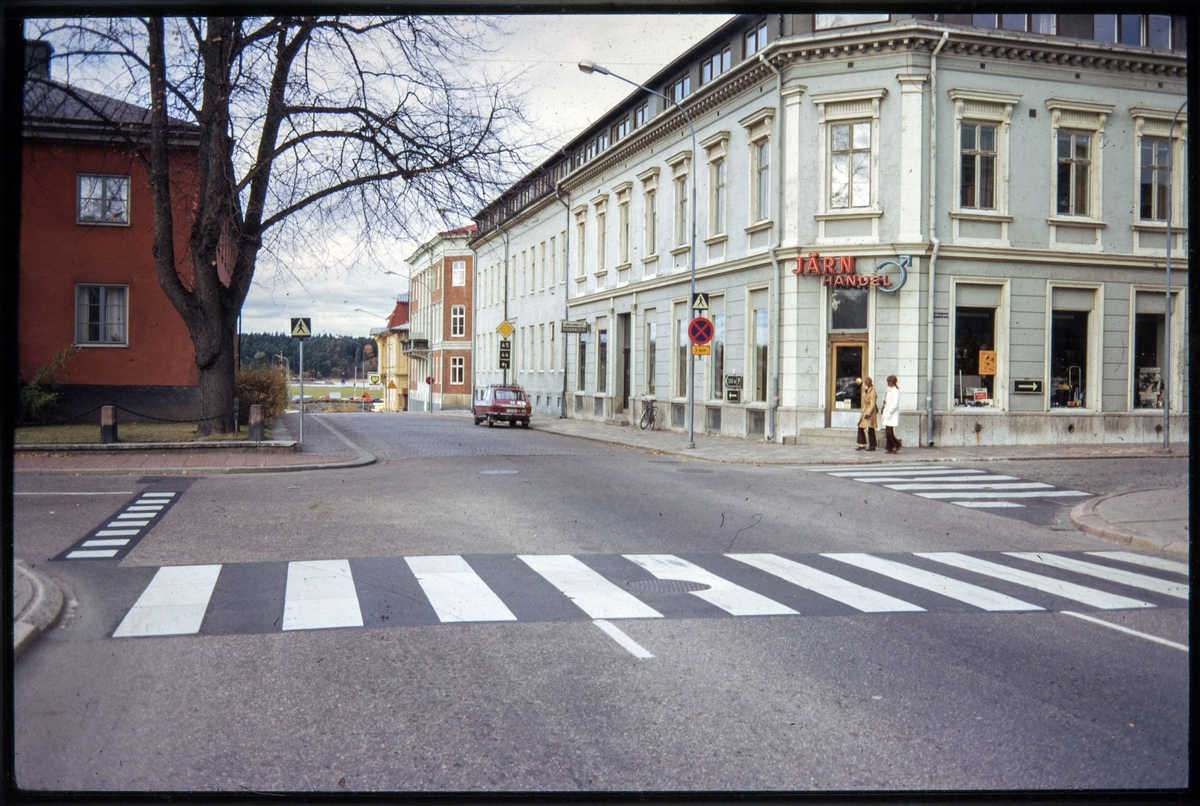 Detta diapositiv i färg är en del av den byggnadsinventering som gjordes i Vänersborg 1972. Motiven på färgbilderna visar oftast bebyggelse ur ett gatuperspektiv.