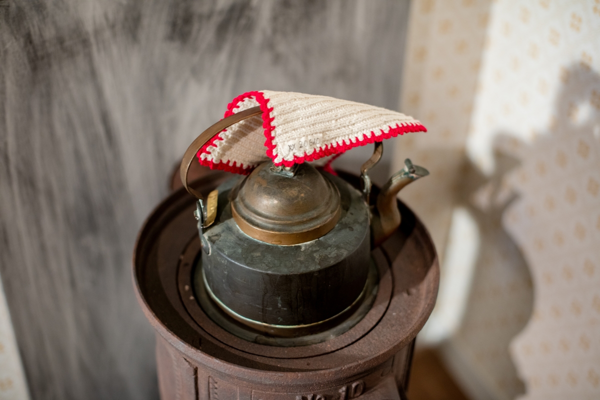Då man endast har tillgång till ett rum får det fylla många funktioner. Vid bordet har Kristina sin arbetsplats som hemarbeterska för Tändsticksfabriken. Här sitter hon och limmar tändsticksaskar som hängs upp i taket för torkning. Utrymmet delar hon med dottern Hedvig som på kvällarna sitter här för att göra sina läxor. I hörnet står August fiskeredskap. Gäddorna han får i Vänern ger en viktig extrainkomst. På den lilla kaminen, som värmer rummet, kan man också laga mat om köket är upptaget av grannen. Golvet är lekplats för familjens minste, Oscar, på natten rullas madrasserna ut och då blir det sovplats istället. Kristina och August delar på kökssoffan. Sommartid brukar Nils och Oscar sova i en liten kammare men på vintern är det för kallt. Det är inte särskilt varmt i det stora rummet heller, det tillhör morgonrutinen att knacka hål på isen i vattenhinken.