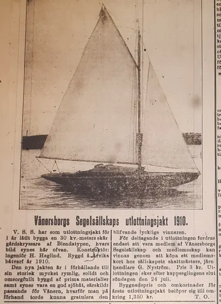 I Elfsborgs läns annons blad annonserades den 19 juli 1910 att "Vänersborgs Segelsällskaps ordinarie kappseglingar äga rum Söndagen 24 Juli kl 11 f.m"