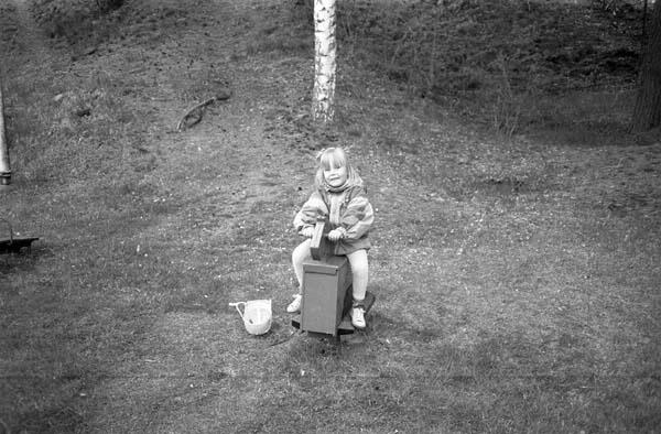 28. Stina Lans är ute och rider. Järpås badsjö. 19.00.29. Stina i gungan med lillasyster Alma, Järpås badsjö.