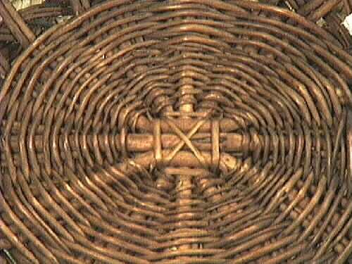 Korg, oval modell av flätade rottågor. Kanten är glest flätad och botten vilar på en oval flätad ring som höjer korgen. Troligen använd som brödkorg. Enligt tidigare katalog kommer korgen från Håle.