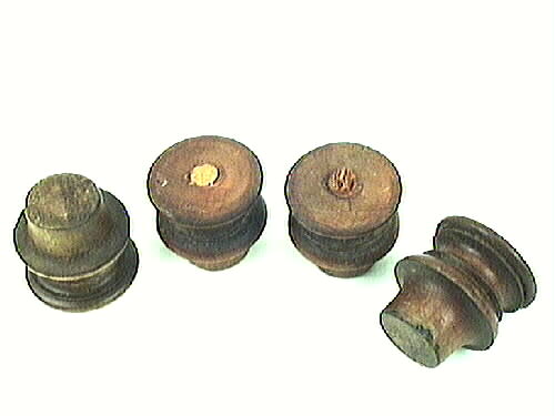 Fyra st svarvade sängfötter med profilerad utformning. De är avsågade i fästet. Lacken är sliten.Tillhör en samling av verktyg efter målaren och möbelsnickaren Alfred Sandström (1879-1965). Han gick som barn på slöjdskolan i Tådene och utbildade sig sedan till målare hos Dahlberg i Lidköping. Inom möbelsnickeriet var han självlärd. 1992 fick Lidköpings Hantverks och Sjöfartsmuseum ta över Sandströ...Visa hela