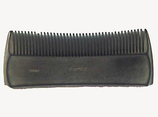 Finkam. Märkt: "Curla", grågrön. Föremålet kommer från Herrmanns frisersalong, Älvgatan 6, Lidköping. Dess sista ägare var Ebbe Lugner som 1982 tog över efter tre generationer Herrmann. Salongen startade 1861 och lades ner 31 december 1993. Källa: Vänermuseets arkiv, 305.