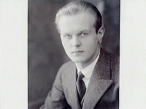Porträtt av Gunnar Ander, son till Ester och G S Ander. Bilden tagen under Konstfackstiden. Efter Konstfackstiden blev han teckningslärare, Sigtuna 1:a platsen, arbetade senare som inredingsarkitekt, freskomålningar bl a ASEA i Västerås.