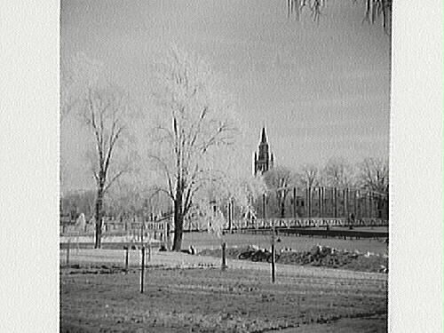 • Wennerbergsbron (Gångbron) i Lidköping från sydväst i vintertid. Nicolaikyrkan i bakgrunden.