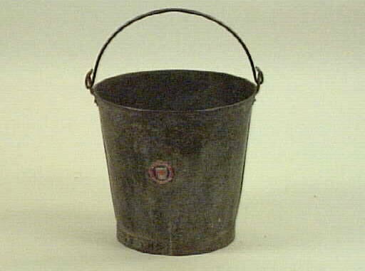 Hink av galvaniserad järnplåt. Båget är hlavcirkelformat och 170 mm högt. Vid varje bågfäste finns en falsad skarv som går lodrätt ned mot botten. Runt botten sitter en 27 mm bred ring. På hinkens ena sida finns ett rött, blått och vitt märke som är 50 mm i diameter. På märket finns en hink och texten "SVENSKT FABRIKAT", STOCKHOLMS GALVANISERINGSFABRIK. Ovanför märket finns "15" inslaget från hink...Visa hela