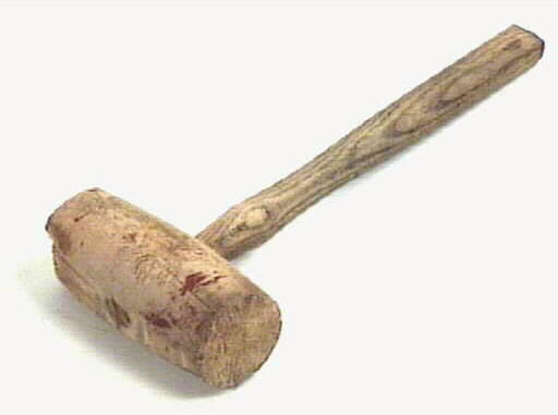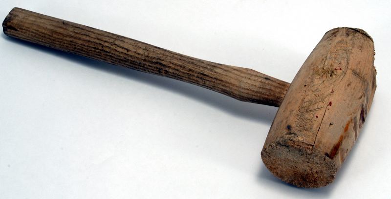 • Träklubba använd av plåtslagare, med svarvat huvud som är 140 mm högt och 60 mm i diameter. I huvudet är ett 285 mm långt ovalt skaft fäst. Ur klubbans huvud är flisor borta och den har fläckar av röd färg. Används vid falsning och drivning av plåt, slås mot ett mothåll t ex betteljärn (5M16-6590).