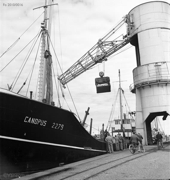 • Yttre hamnen i Lidköping. Lastning av handelsfartyget Canopus 2279 vid östra kajen.
