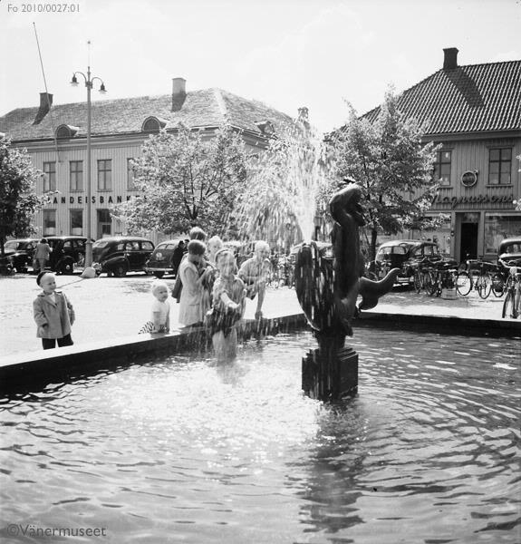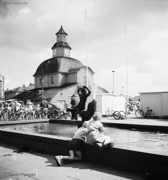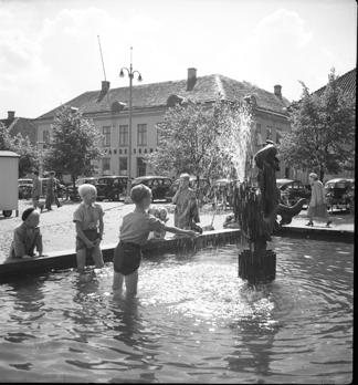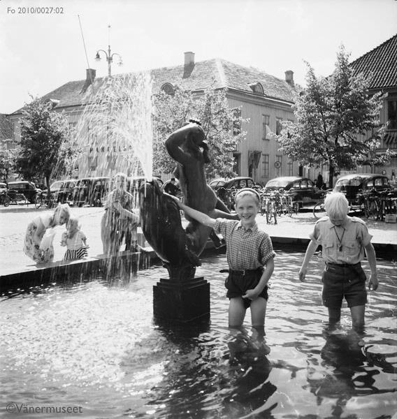 • Barn leker i Torgfontänen på Nya stadens torg i Lidköping.