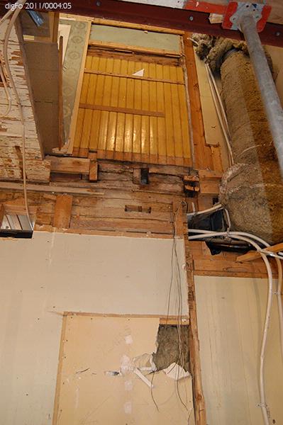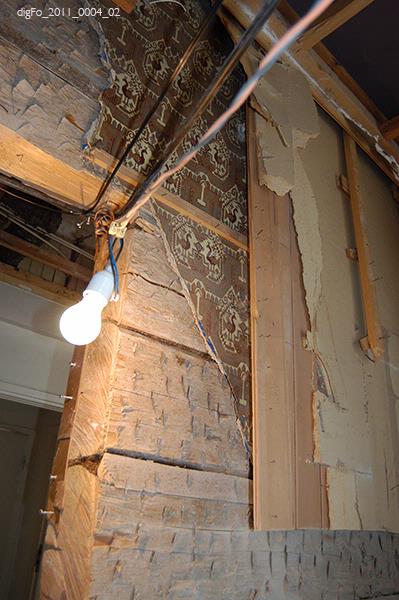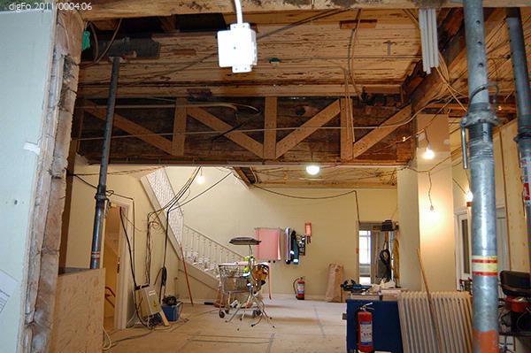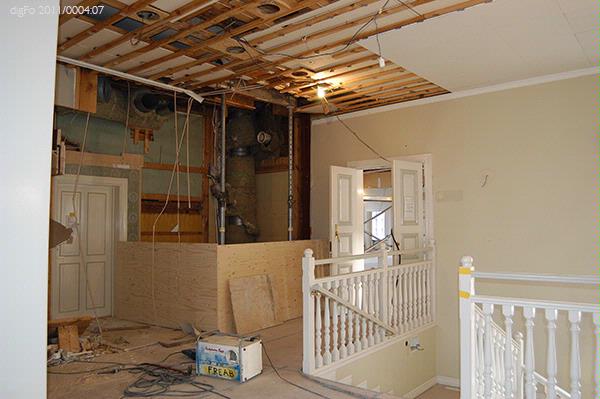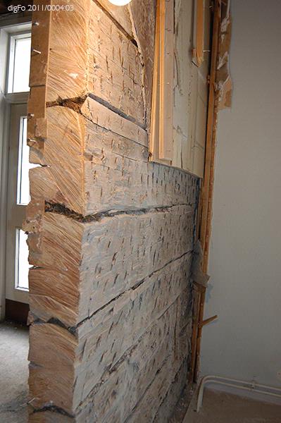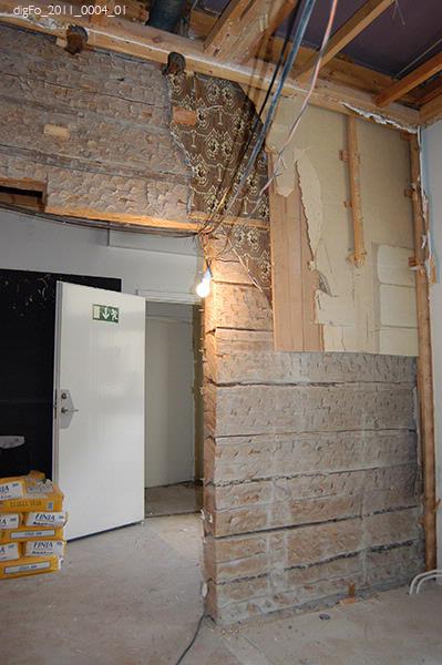 Dokumentation av Lidbeckska huset under renovering hösten 2011. Bild 1-3. Timmervägg vid gårdsentré. Vänermuseet har tagit en dit av tapetväggen till samlingarna. 4. Vy från främre entrén mot norr, sammanträdesrum. 5. Entré, bottenvåningen, hisschakt. 6. Entré, bottenvåningen. Trappan upp till övervåningen till vänster i fonden. 7. Övervåningen. Hisschakt till vänster. Dubbeldörr till fullmäktiges...