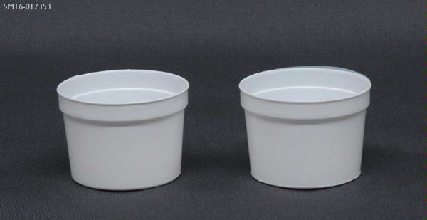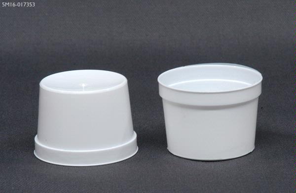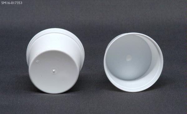 Medicinbägare 30 ml (2 st), bredare och lägre modell, i vit formsprutad polypropenplast. Bägarna saknar text och streck. Bägaren är 32 mm hög och har diametern 46 mm.