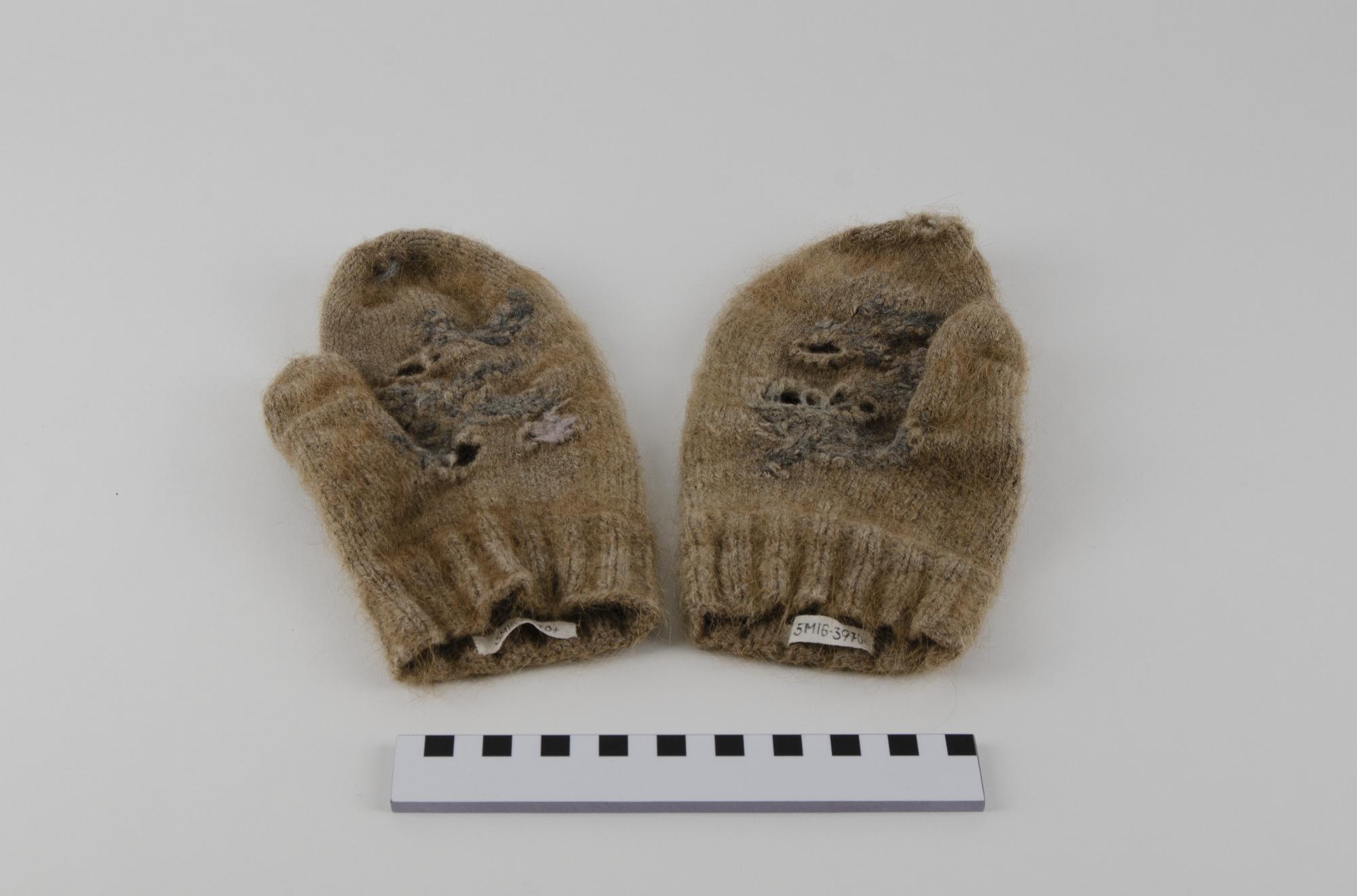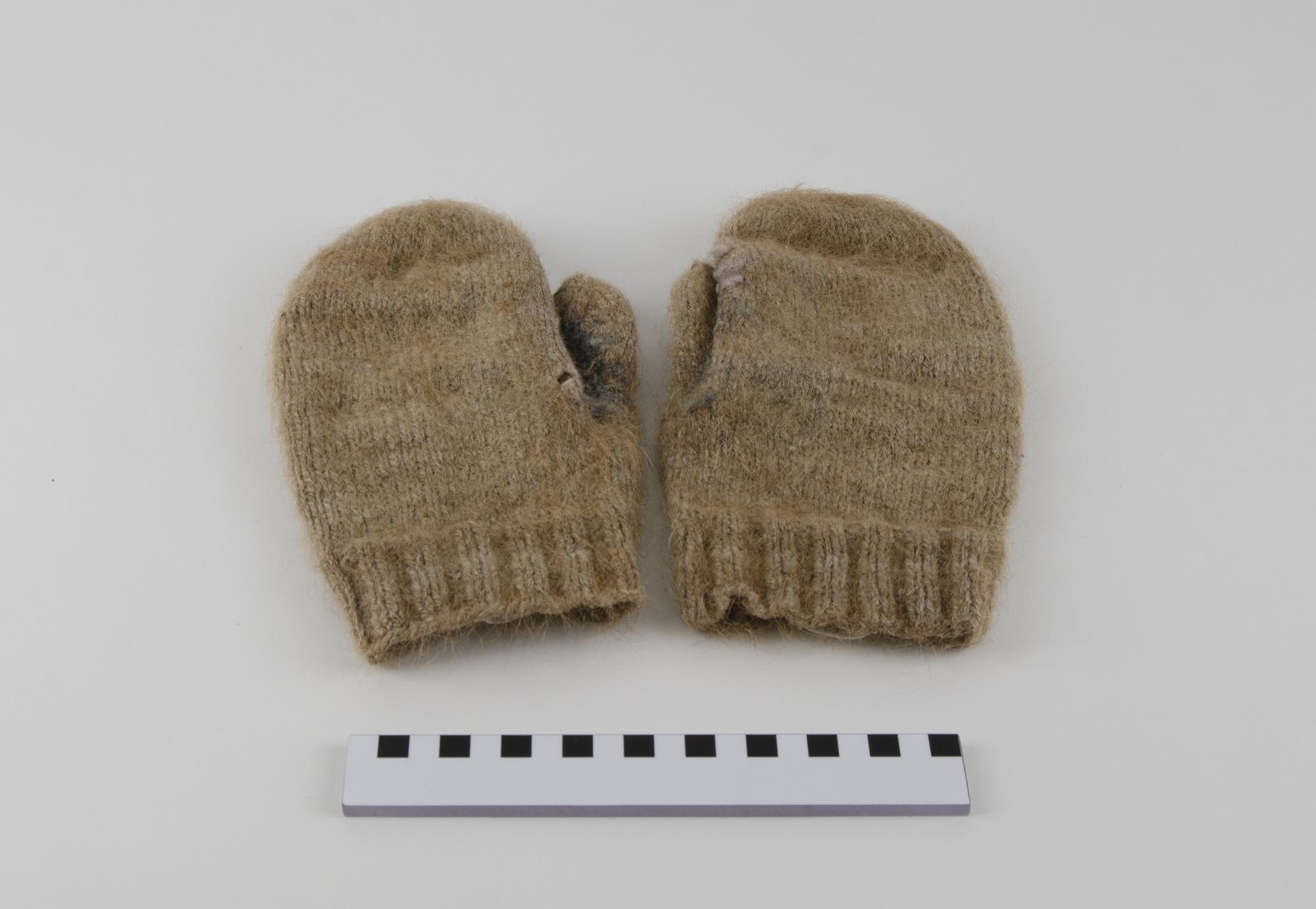 Mansvante, par. Tumvantar i blandat material av människohår och ullgarn. Tumvantar i oblekt yllegarn spunnits tillsammans med människohår. Tillverkaren använde sig av sitt eget hår som hon samlade från hårborsten varje dag. Vantarna är stickade i slätstickning med en 50 mm hög, enkel mudd stickad i två räta och två aviga maskor. Tillverkaren levde 1883-1958 och var givarens mormor. Brukaren använde dessa vantar 1948-1979, och endast då han fiskade, på vintern. Håret gör att vantarna är varma, även då de är blöta. På båten och vid arbete på båt används ej hårvantar då de lätt slits sönder av vajer etc. Brukaren levde 1906-1981, född på Stohagen vid Spiken, Kållandsö. Hans far var fiskare och bonde. Hans son är givaren. Vantarna är mycket använda. De är lagade med flera sorters garn på insidan och är trasig i fingertoppen.