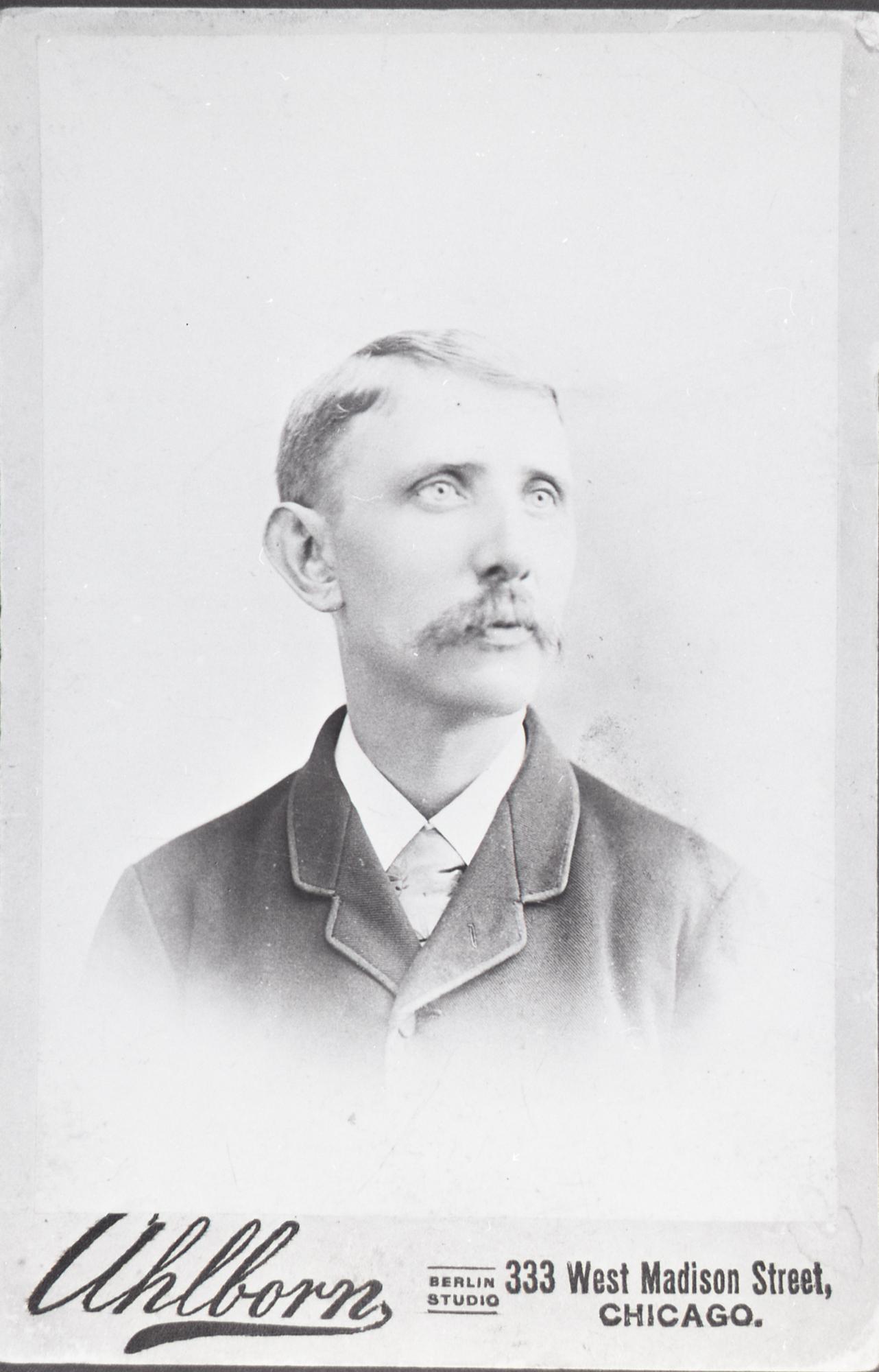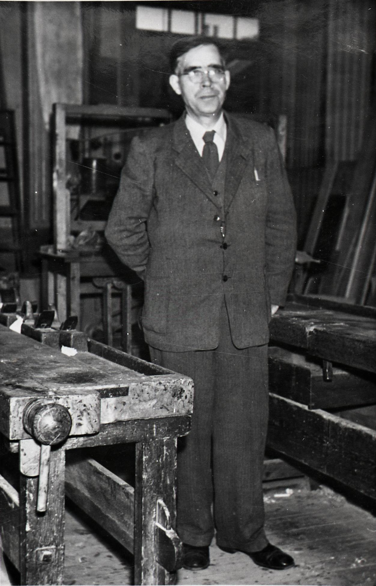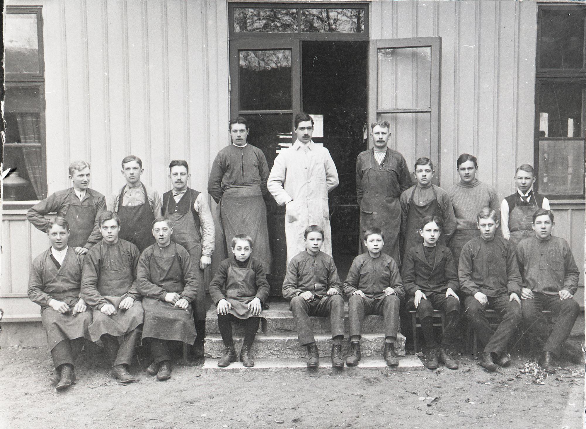 01: Porträtt av Per Evergistus Persson (1859-1899) född i Eslöv, gick i lära hos Lagerlöf. Möbelsnickare och svarvare. Fader till Sven Persson, möbelsnickare i Lidköping (1897-1975). Deltog i Stockholmsutställningen 1897. Fick hedersomnämnande för svarveriarbeten.