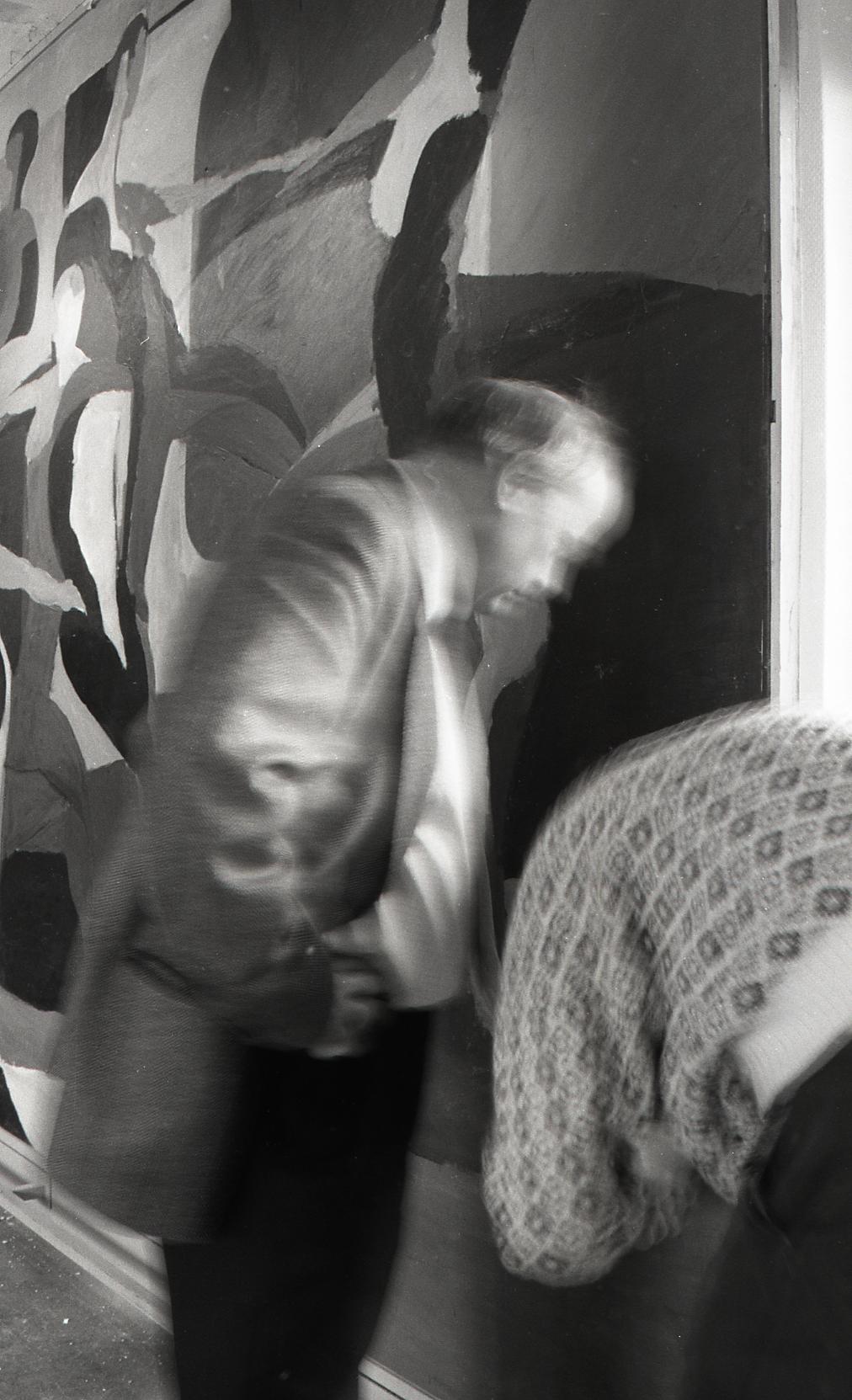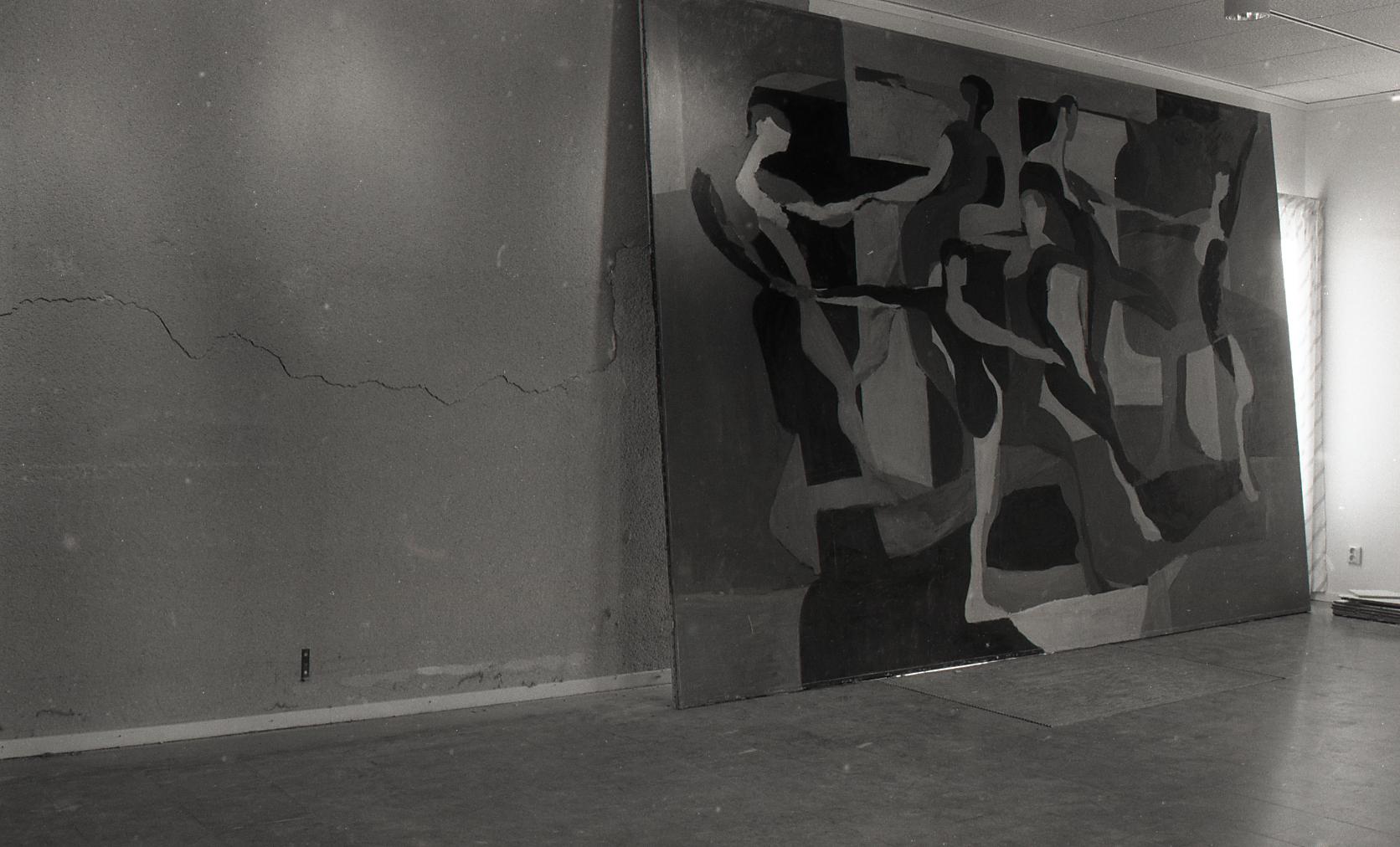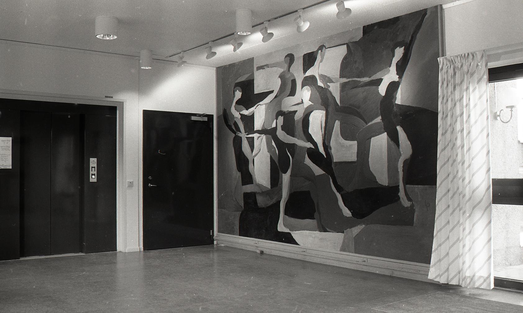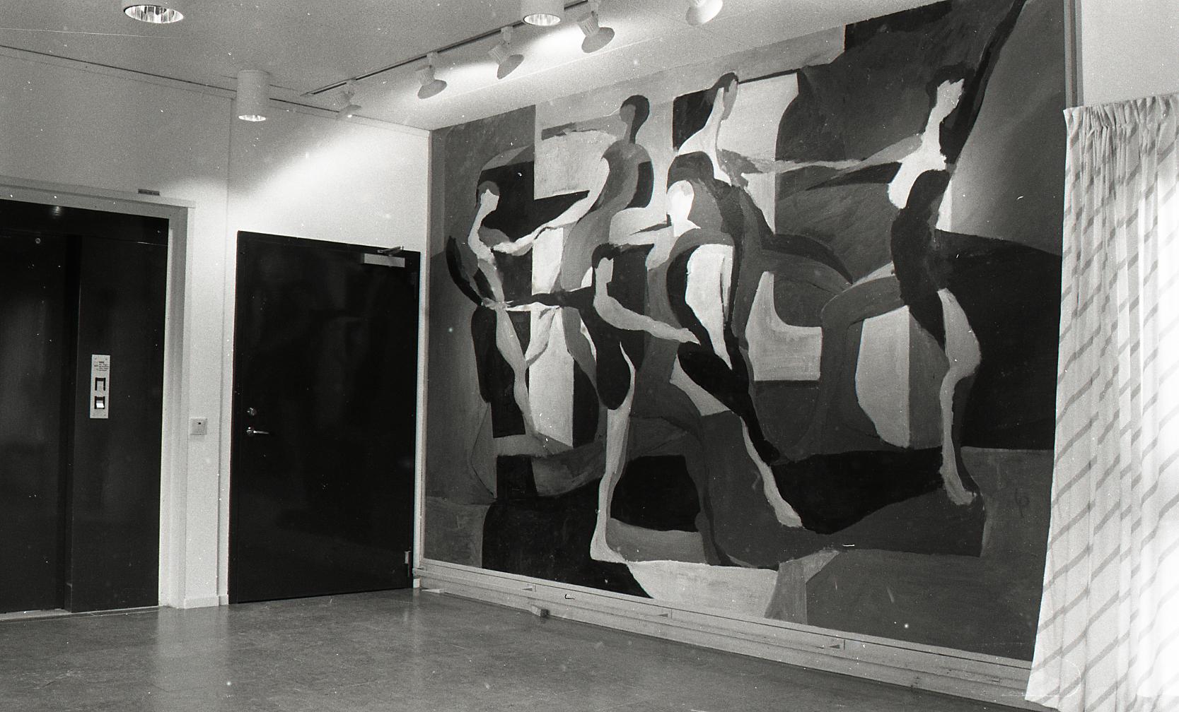 • Dokumentation av Lasse Perssons målning på Solhaga servicehus inför restaurering på Älvsborgs länsmuseum. Nedtagning och dokumentation av skador.