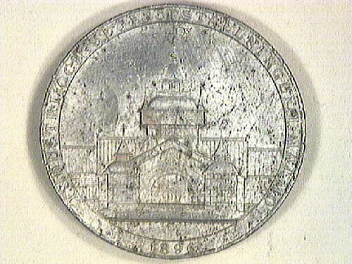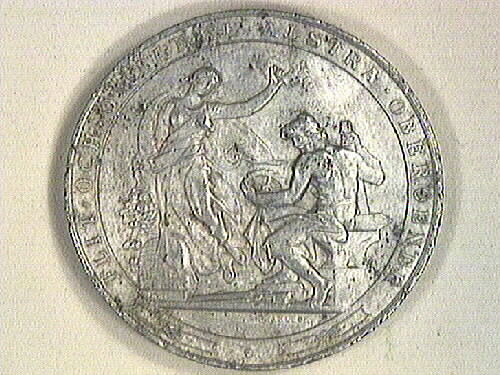 Medalj. Åtsidan text: FLIT OCH OMTANKE ALSTRA OBEROENDE. Bild på en kvinna och man. Frånsidan text: INDUSTRI OCH SLÖJDUTSTÄLLNING I MALMÖ 1896. Bild av utställningen entrébyggnad.
