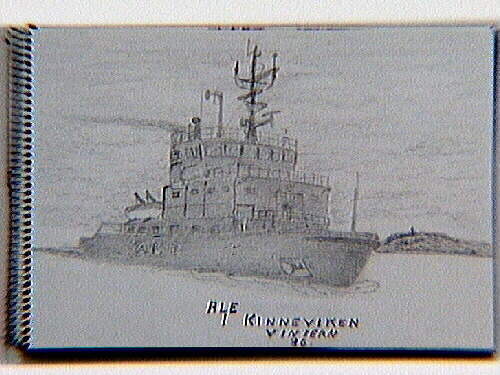 Isbrytaren "Ale".Teckning av Karl Haglund, Lidköping 1985-86.
