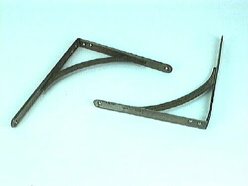 • Konsoler, ett par av metall, bockade i 90 graders vinkel, med bågformigt profilerat stöd mellan de två armarna, plats för 6 skruvar på vardera.