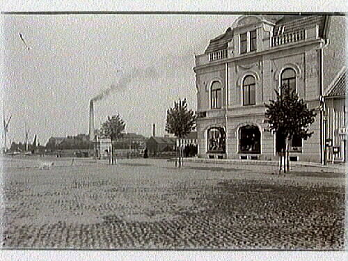• Bild från kvarteret Midgård , Lidköping. I det stora huset hade Ernst Bergvik sitt herrskrädderi. Finns även som orignalkopia på post nr: 1988:0148.