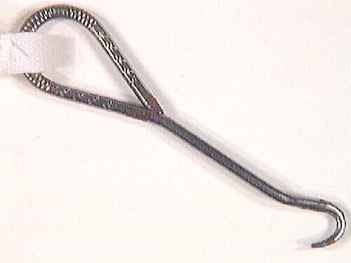 Knäppredskap för både kvinnor och barn.Den ena ändan har en krok och den andra en ögla. Den används med fördel på knäppkängor eller för att dra åt snörning. Funktion: skoknäppning.
