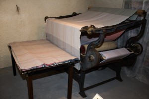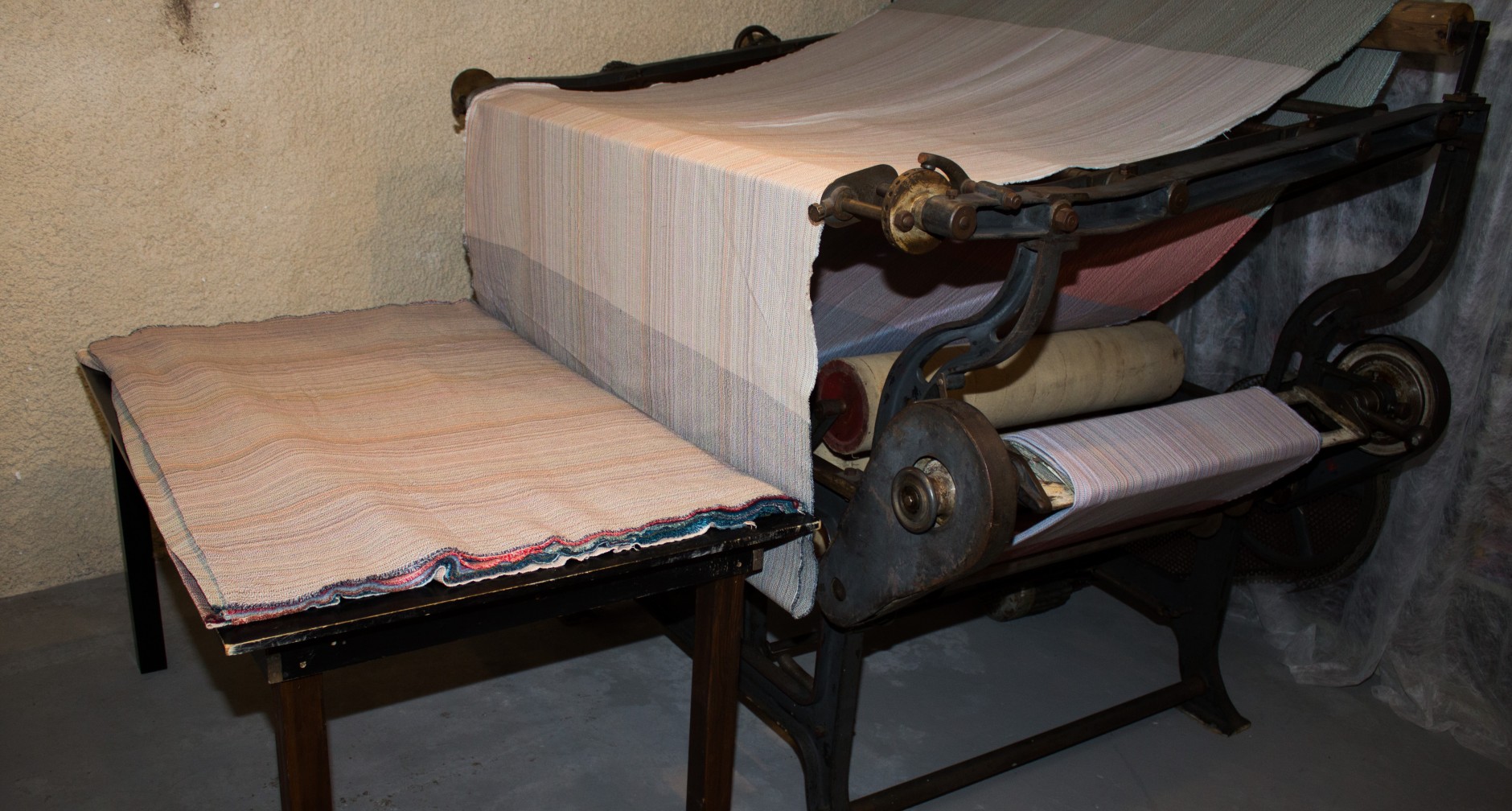 The machine wound up to 1,000m of fabrics per shift (8 hours). One bobbin could carry about 20 to 30 metres of fabric.