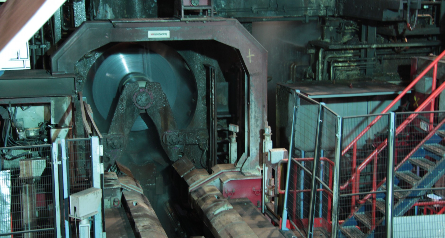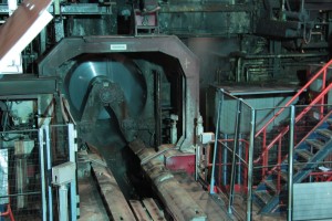 In a hot rolling mill the process of hot rolling is carried out, a metalworking process in steel production: rolling at high temperatures makes possible a significant reduction in thickness. For example, crude steel billets are reshaped into hot-rolled strip (a hot-rolled product with a rectangular cross section and a width of at least 600 mm).
